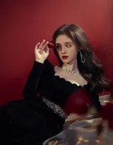 鞠婧祎身着墨绿丝绒长裙侧身回眸,暖黄灯光在她精致的侧脸镀上一层柔光,仿佛从旧时光走来的画中人暖调光影中鞠婧祎轻倚桌边,眼眸低垂似在沉思,珍珠耳饰与卷曲发丝勾勒出温柔静谧的轮廓橘色光影笼罩下她手持复古电话,朱唇微启眼神迷离,仿佛正进行一场跨越时空的秘密对话鞠婧祎一袭红裙置身于暗调背景,锁骨线条精致如蝶,指尖轻抚下颌展现极具张力的静态之美她慵懒靠在复古沙发上,光线穿过发丝形成光晕,嘴角一抹浅笑温柔了周遭的空气与时光特写镜头捕捉她卷翘睫毛下的澄澈眼眸,光影在瞳孔中跳跃,诉说着无声却万千的心事鞠婧祎身着缎面吊带裙背对镜头轻回首,香肩微露颈线优美,氛围暧昧而高级充满故事张力